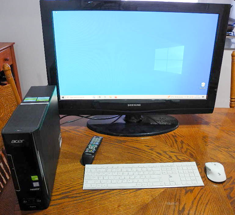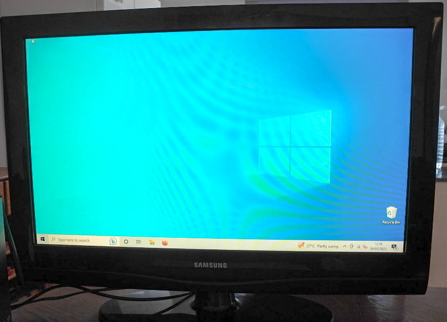 The monitor is a Samsung 32inch TV, the wireless keyboard and mouse are Spanish, although I can supply an older UK wired keyboard and mouse if preferred.