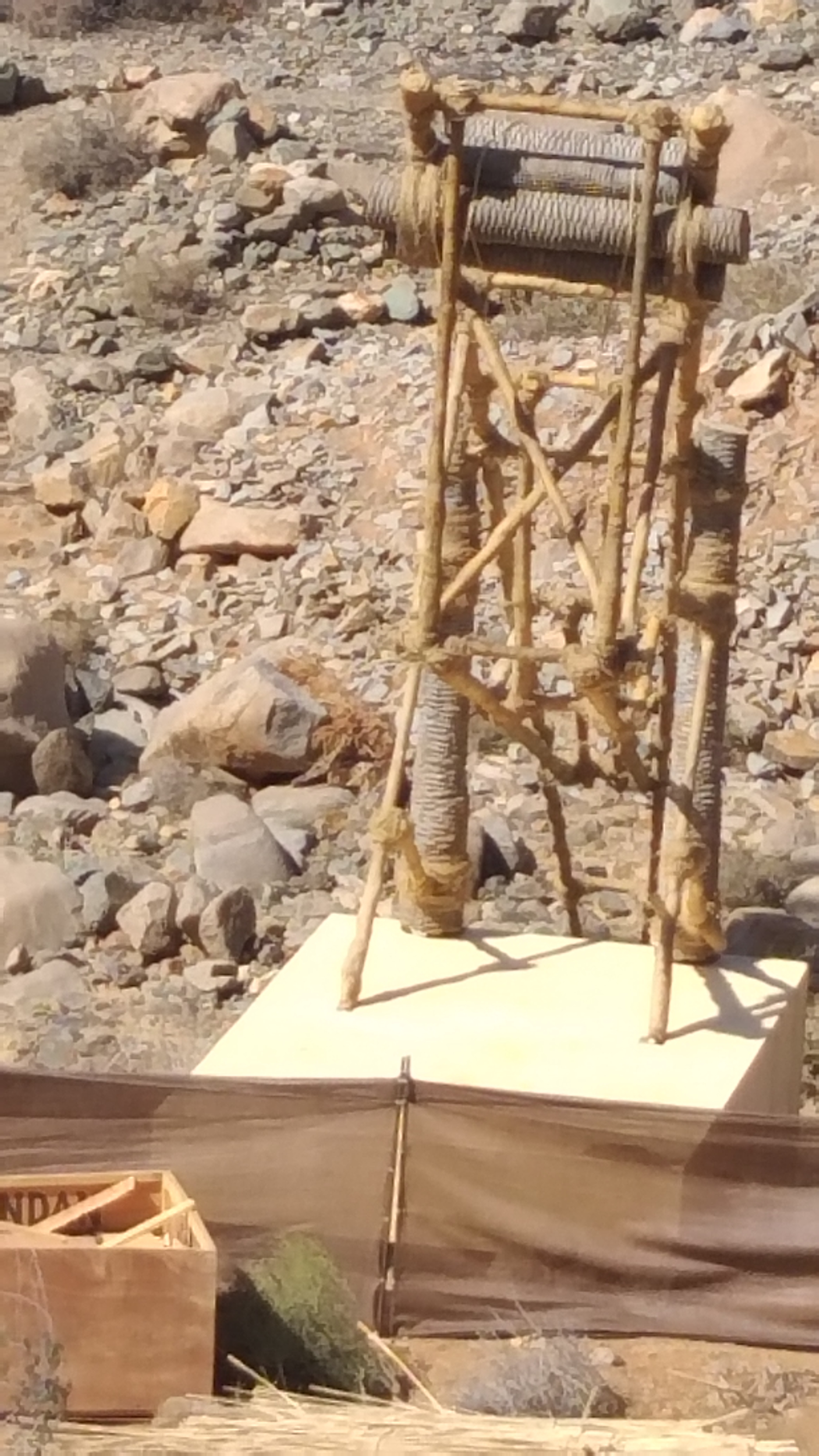 The other, being built in what was the native plant conservation zone are bamboo houses, with a plantation of corn and other props. Plants and palms in pots from the Oasis and a water deposito of maybe 200k gallons and watering system. Now we know where all our water went a few weeks ago! The road is partially closed here. The other major location where they appear to have built a mini tented city for welfare? And has most of the Winnebago's from Pozo Negro is just behind Garcey, near the range. The road here is closed from 4th Nov for 2 weeks. Loads of heavy lifting gear, earth moving equipment and containers here as well. Seem to be re-arranging the beaches, bigtime. If you want to watch the comings and goings, everything passes thru' Pajara centre. Just sit in a cafe. But where is the big metal camel at Pozo Negro going?? Someone said filming to be done in the Dunes, as well. Expect the road to be closed again anytime soon. Hopefully after the Kite Festival, or there'll be a lot of cgi work ![]() ---------------------------------------------------------- This is the bamboo village being built. (Sam, perhaps you could add into the previous post?) EDIT: Posts merged, Sam.