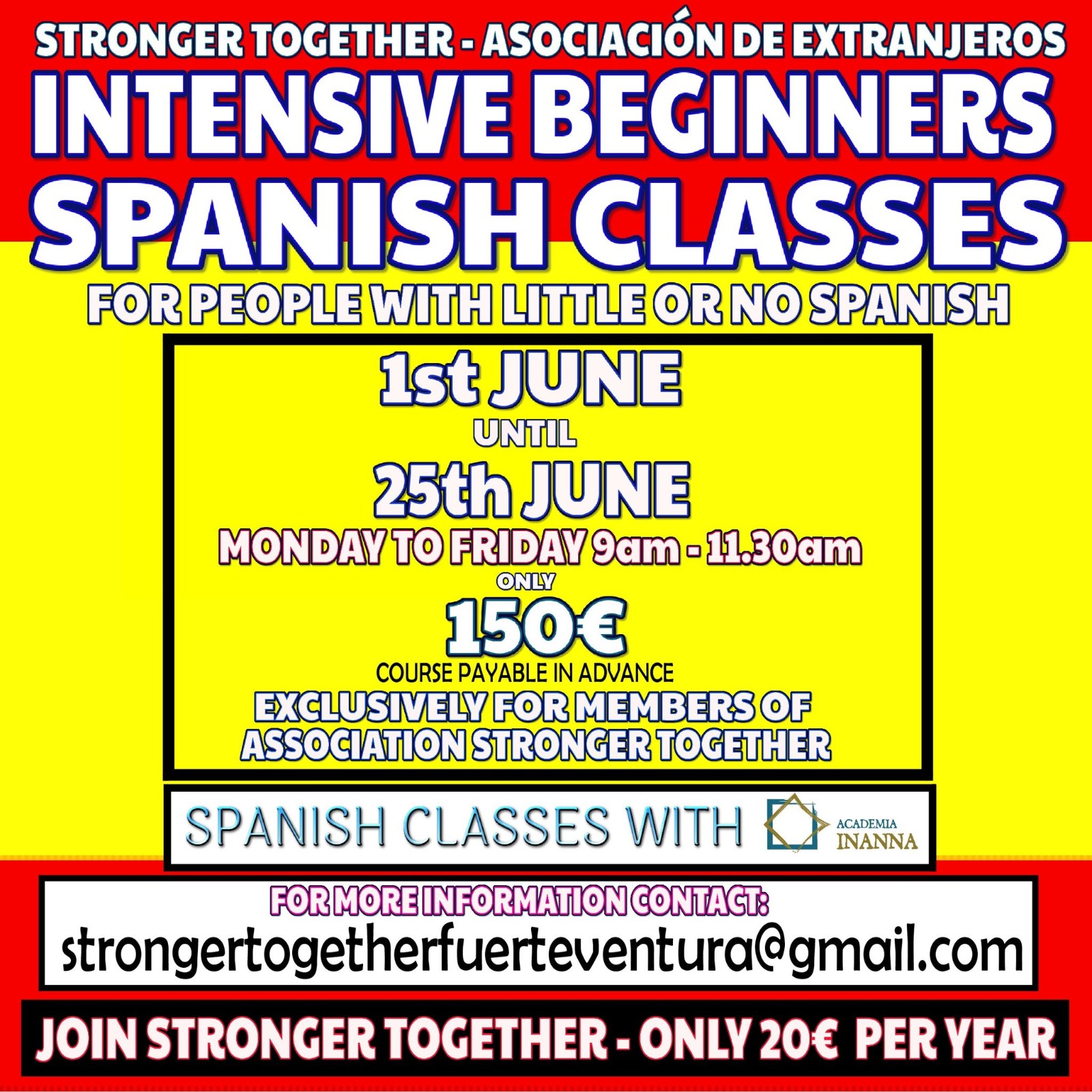 Who knows, by the end of the summer you might be a much more confident speaker of Spanish. And we know you'd like that. Classes are aimed at beginners and intermediate speakers.