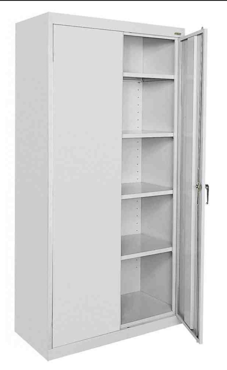 Looking to buy a substantial METAL storage cabinet with good quality locking doors. See attached photo). Needed for storage of valuable items in a semi-public area. Have searched various outlets but only found plastic cupboards or very flimsy metal with very poor quality doors/locks.