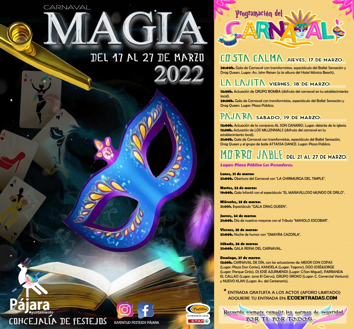 17-27 Mar - Paraja Carnival Events with the theme of Magic. Carnival day in Costa Calma is 17th, La Lajita 18th, Pajara 19th and Morro Jable 21st-27th.