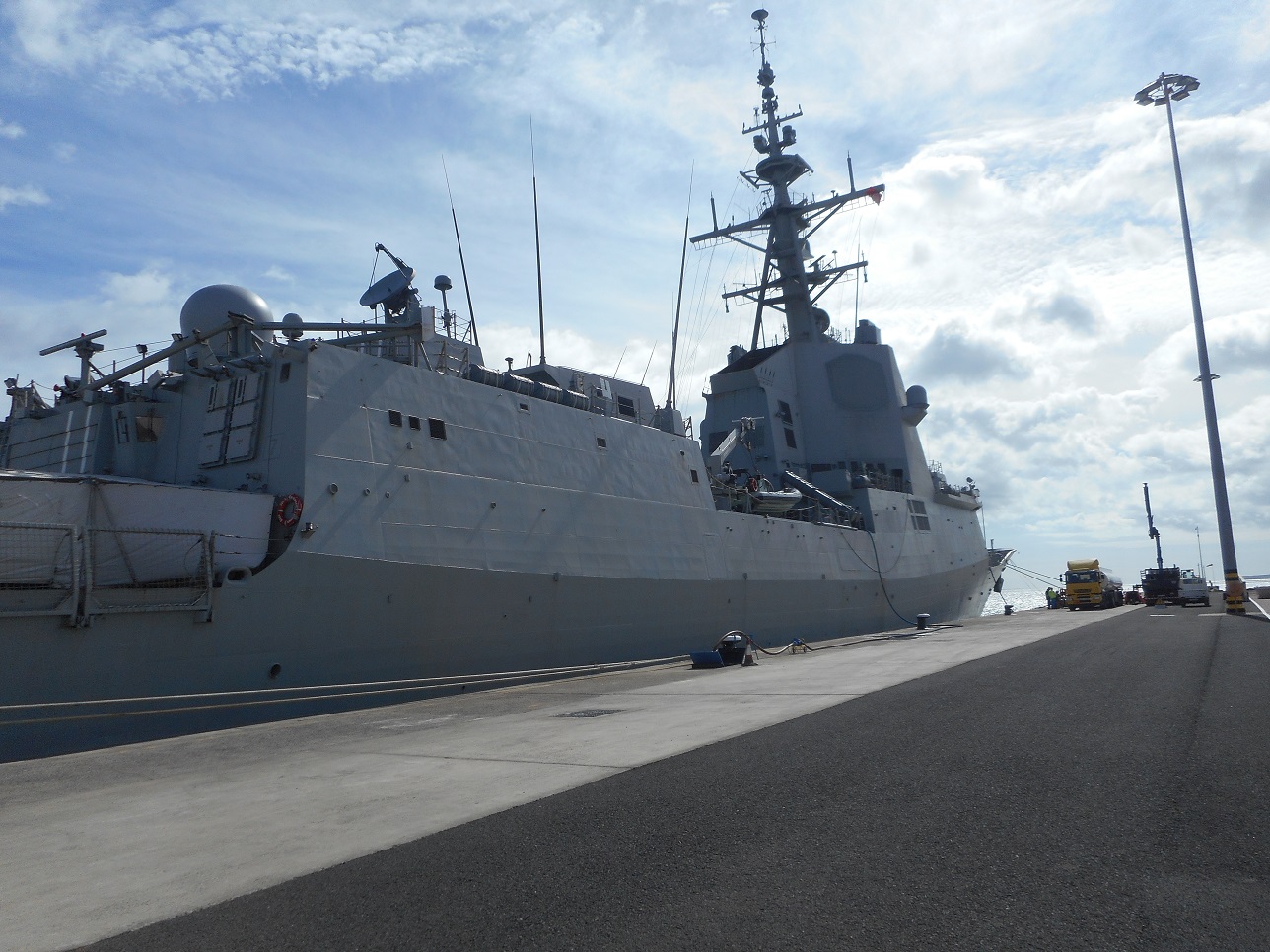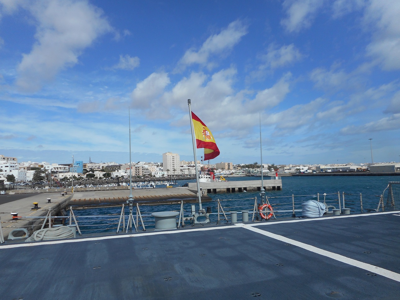 Tour took about 1/2 an hour, you need fluent Spanish for the information given by the sailors who guide you round. You go on the aft deck where they have a helicopter landing deck and hanger for when on international missions, then up through corridors past the Hospital Bay to the Bridge where kids were able to handle the controls, and back again. The ship is 16 years old i.e. launched 2003 and a lot of the installation reminds me of the HM Royal Yacht Britannia, launched 1953, which we toured in August, so it appears not a lot has changes in ship building, perhaps the electronics may be a little more up to date