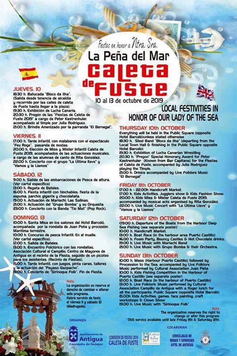 In Caleta de Fuste it is the Fiesta of Nuestra Señora de Peña del Mar on Friday, Saturday and Sunday.