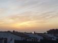 This morning at 7.45am clear overhead high wispy cloud to the west but out east over the sea there is a big bank of cloud, 15c, a light breeze and some condensation on the car.  Moon setting to the west visible sun rising in the east behind the bank of cloud.
